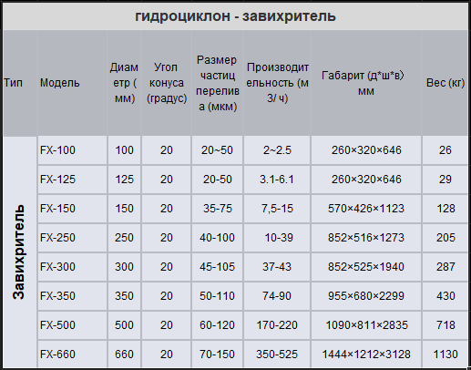 Гидроциклон - это устройство для классификации с помощью центробежных сил инерции во вращающемся потоке. Пульпа подается в тангенциальном направлении под определенным давлением, так что пульпа ускоряется под центробежной силой до внутренней стенки циклона для достижения цели классификации. В циклоне способ подачи в настоящее время - прямая подача с песочным насосом.